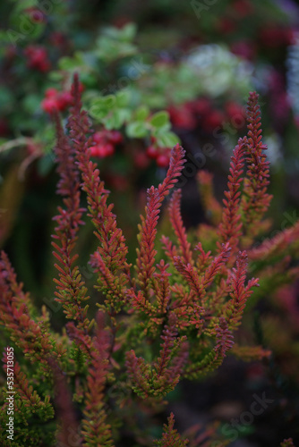 Flower bed with heather and cranberries
