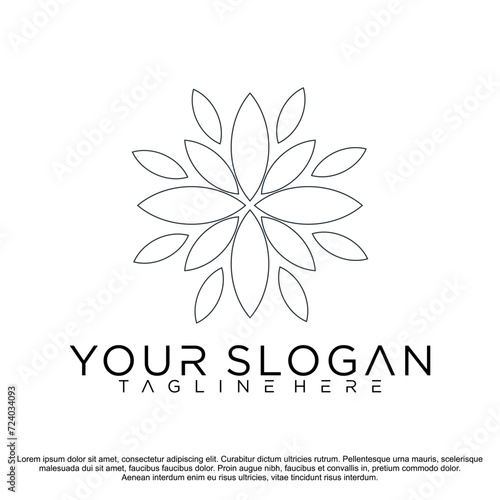 flower with floral line logo, icon vector illustrator