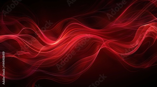 Flowing red luminous waves on dark background creating a dynamic and vibrant abstract pattern