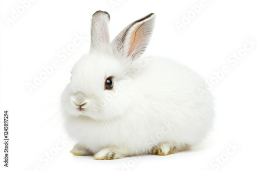 Fluffy arctic hare on a white background, showcasing its soft, winter coat