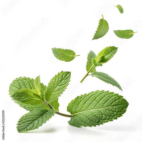 flying mint leaves isolated on white background