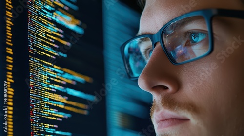 Focused developer analyzing code on computer screen