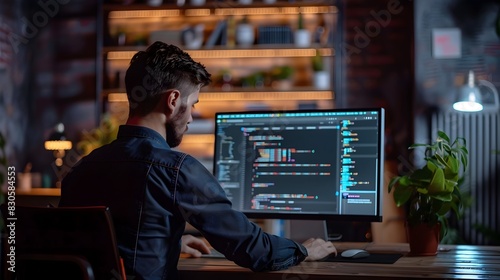 Focused Developer Automating Website Functionality with Scripts in Late Night Workspace