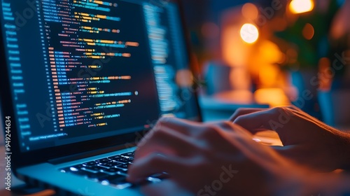 Focused Developer Immersed in Coding a Website during Intense Late Night Programming Session