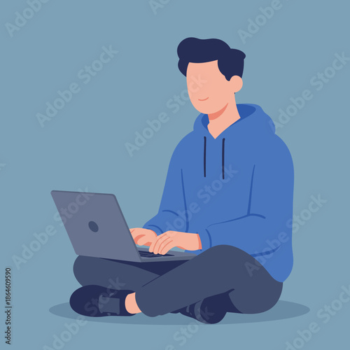 Focused Man Using Laptop While Sitting
