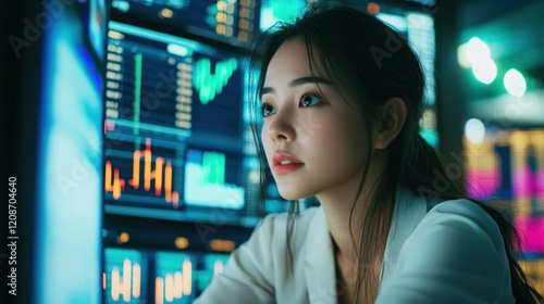Focused on the Data: A Woman Analyzes Charts