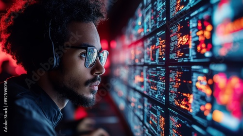 Focused Programmer Analyzing Code on a Multi-Monitor Setup