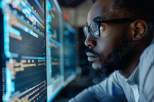 Focused Programmer Working Late at Night