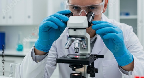 Focused scientist using a microscope in a lab