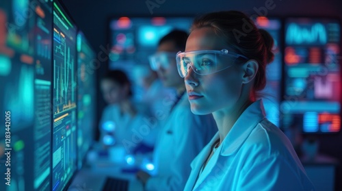 Focused Young Scientist Analyzing Data in Modern Laboratory
