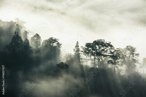 Fog covering the mountain forests