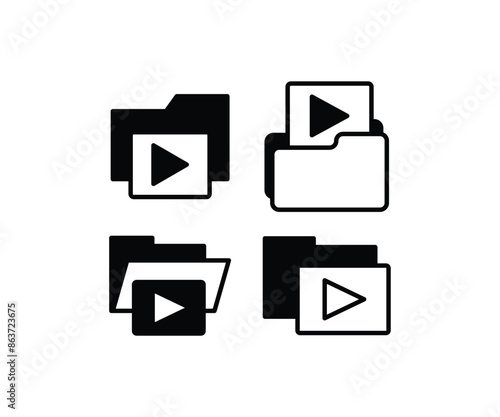 folder video files icons symbol sign vector design black white color simple illustration collection set
