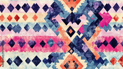 Folk Seamless Art Multicolored Geometric Pattern Pastel Bohemian Rug Abstract Hand Drawn Design Bohemian Tie Dye Border Ethnic Boho Print Pastel Scarf Tapestry