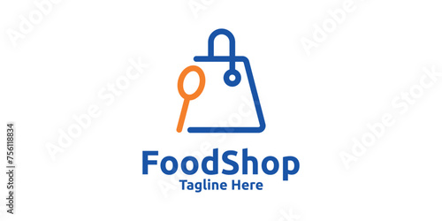 food shop logo design, shopping spoons and bags, logo design templates, symbols, creative ideas.