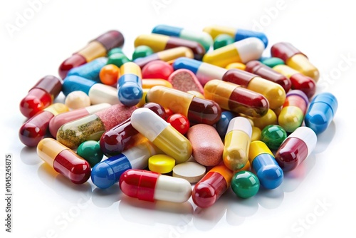 Forced perspective pills capsules isolated on white background