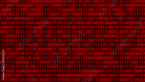 Foreground red binary code. Digits of 0 and 1 switch to binary data loop. Concept: Technology, data, cybersecurity, binary code.