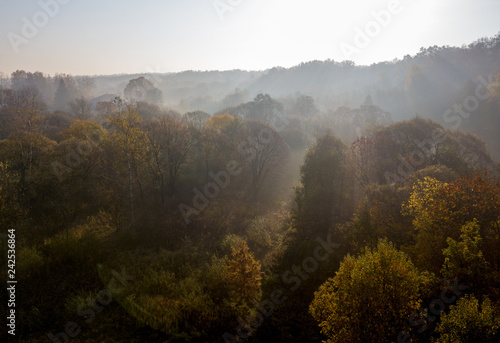 Forest in morning fog