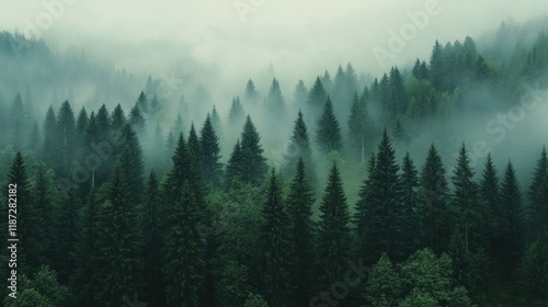 Forest landscape with trees. Pine forest background. Beautiful green forest. Magical forest.