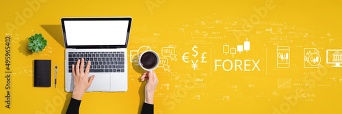 Forex trading concept with person using a laptop computer