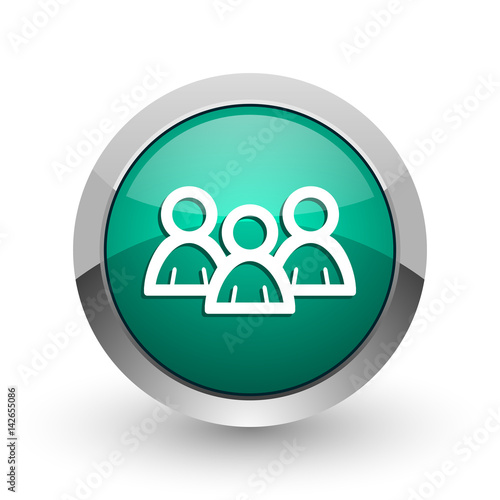 Forum silver metallic chrome web design green round internet icon with shadow on white background.