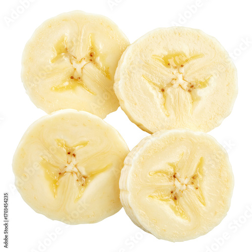 Four banana slices arranged