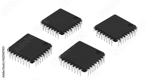 Four black microchips are isolated on transparent background