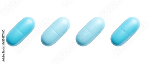 Four light-blue oval pills on white background
