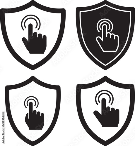 Four shield icons featuring a finger touching a screen silhouette