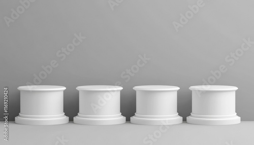 Four White Pedestals on Gray Background