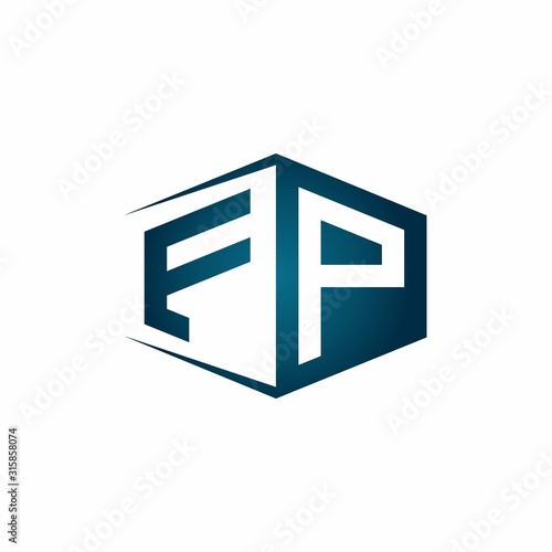 FP monogram logo with hexagon shape and negative space style ribbon design template
