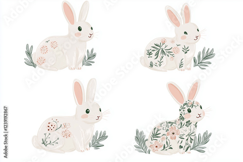 Frame exploring artistry of Lines arrays patterns in digital art set of cute vector bunnies with flowers artistry concept.