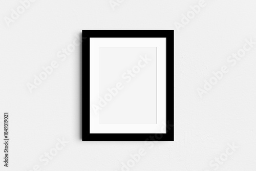 Frame mockup 4:5. Single black frame mockup. Clean, modern, minimalist, bright. Portrait. Vertical. Passepartout/mat opening in 3:4 aspect ratio.