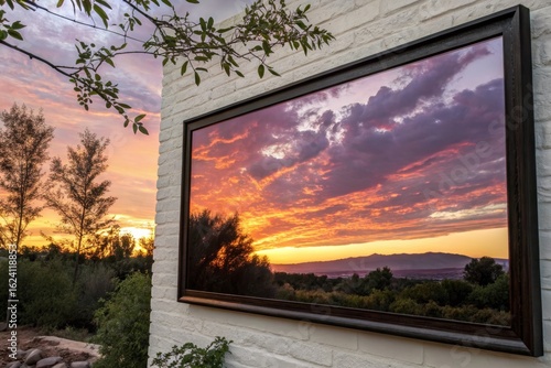 Framed Sunset Landscape on Brick Wall
