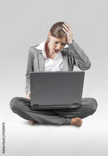 Frau mit Laptop sitzend am Boden