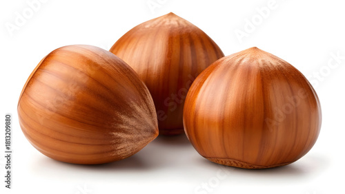 Fresh Hazelnuts Isolated on White Background – Brown Nut Kernel Closeup