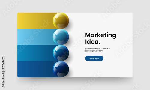 Fresh pamphlet vector design concept. Clean realistic spheres banner layout.