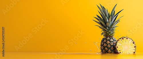 Fresh pineapple on yellow background