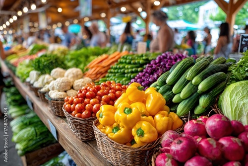 Fresh Produce Display at a Busy Farmers Market