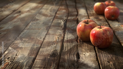 Fresh Red Apples on Rustic Wooden Table with Warm Lighting