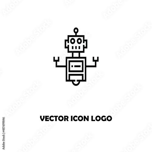 friendly crawler robot, smiling, linear icon. Editable stroke