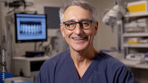 Friendly Male Dentist Smiling in Modern Dental Clinic Environment