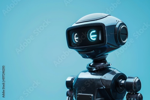 Friendly robot with expressive eyes on blue background