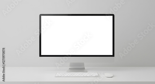 Front view blank PC screen white desktop bright lighting product demonstration clean sharp