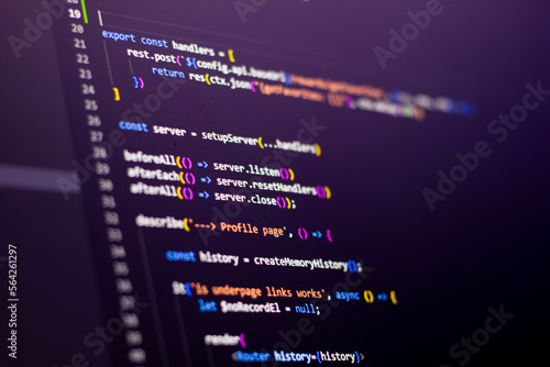 Frontend Code background. Javascript language coding is on the screen.
