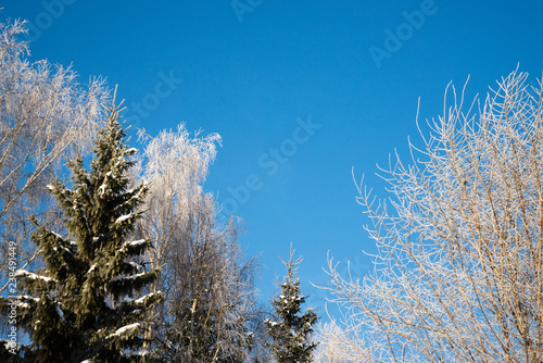 frozen birch and spruce against