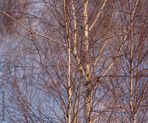 Frozen birch tree in the sunrise light