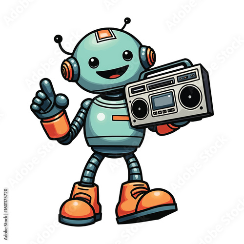 Funky Retro Robot with Classic Stereo Player