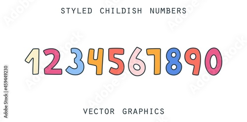 Funny colorful alphabet numbers. Styled childish design elements. Vector template
