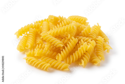 Fusilli placed on a white background