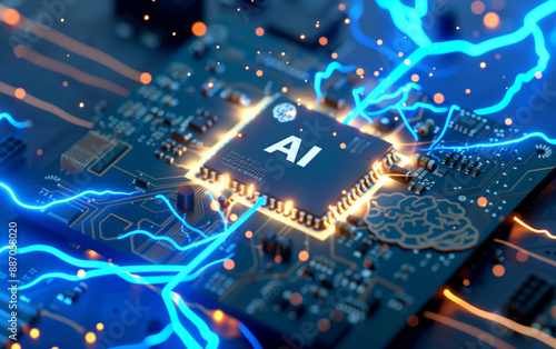 Fusion of AI and advanced 3D rendering technology: Futuristic visuals created by glowing electric circuits and blue backgrounds.AIと先進3Dレンダリング技術の融合:光る電気回路と青い背景が生み出す未来的なビジュアル。Generative AI
